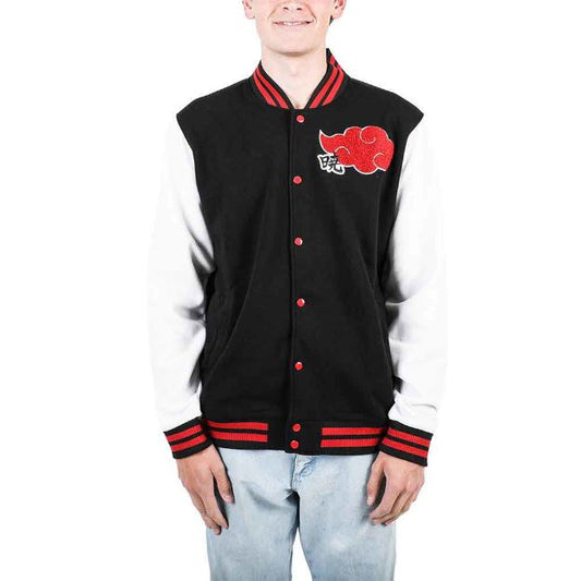 NARUTO AKATSUKI EMBROIDERED FLEECE LETTERMAN JACKET